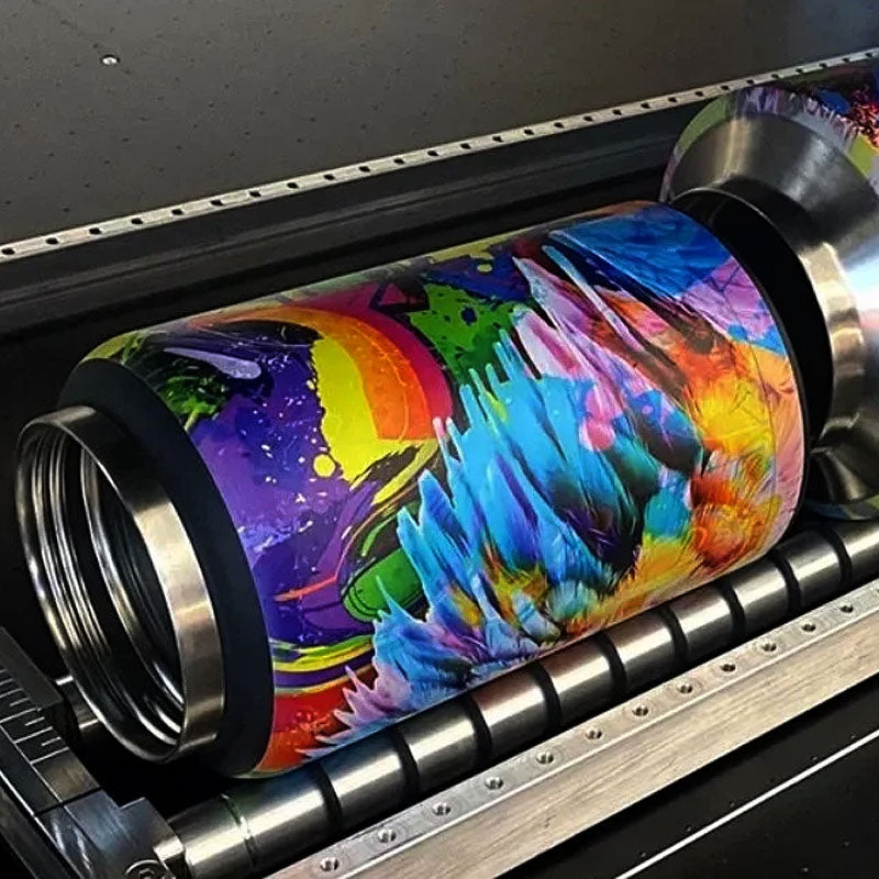 Ink: UV. 4/6/7/8-Color Mix: C / M / Y / K / White / Orange / Red / Gloss / Primer. Resolution: 1,200 dots/in. Top Printing Speed: 11.78 sqm/hr. Object Size: 640 x 488 x 204 mm / 8.0 kg. Print Area: 610 x 458 mm. Interface: Gigabit Ethernet. Dimensions: 1,601 x 1,267 x 760 mm / 211 kg.